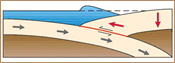 Nastanak zemljotresa - lomom stijena u kontaktnoj zoni i izdizanje vodene mase iznad hipocentralne zone |